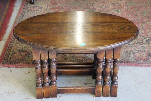 Quality C20th Nest Of 3 Oval Oak Side Tables 80cm wide x 46cm high x 50cm deep