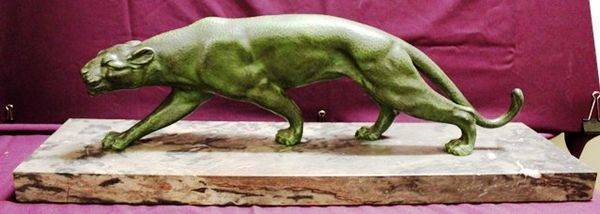 A superb bronze of Milani`s Big Cat excellent colour and form C1920s. 22 cm high, 80 cm wide, 22 cm deep