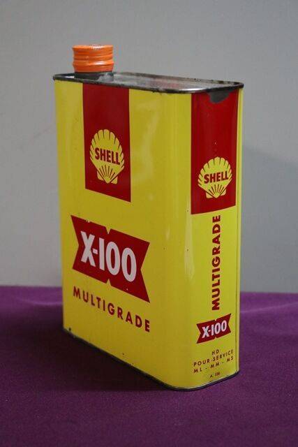 New Old Stock and Unopened Shell X-100 2 Litres Motor Oil Tin, Extremity Bright Colours.