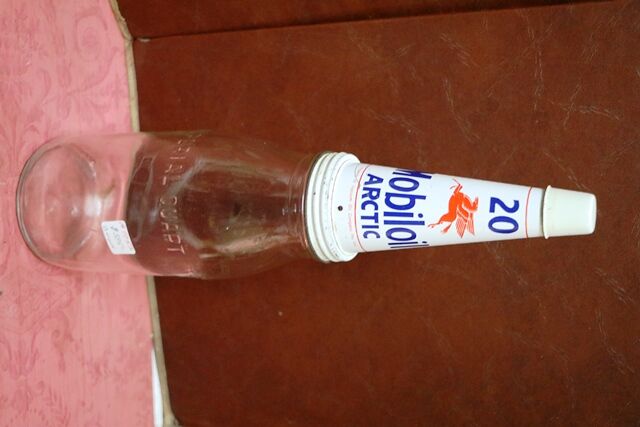 Genuine Mobiloil Arctic 20 Tin Top with Dust Cap. On Imperial Quart Glass Bottle. Good Bright Top.