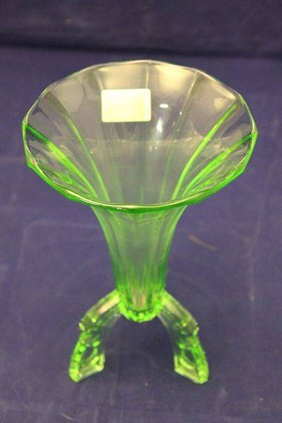 Green Glass Art Deco Vase in good order measures 20cm tall