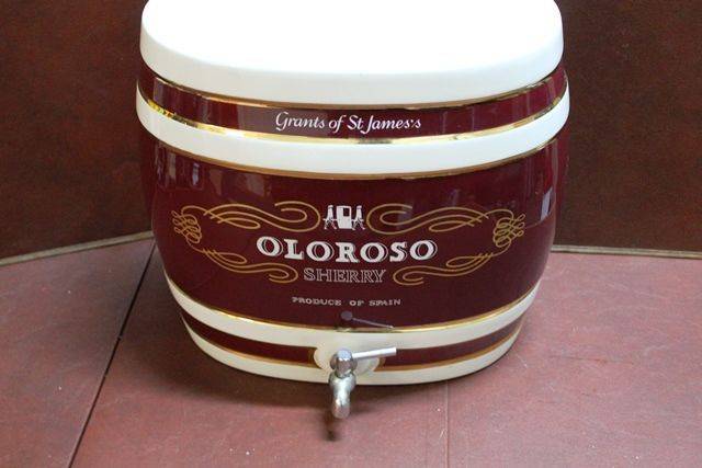 Large Ceramic Oloroso Sherry Dispenser Barrel. 36cm tall 39cm wide