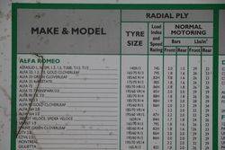 Kelly Tyres Tyre Pressures Check Sign 54cm wide x 91cm high