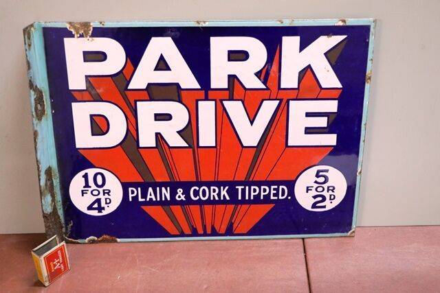 Art Deco Park Drive Double Sided Cigarette Sign. Great Gloss & Colour. 41cm wide x 31cm high..