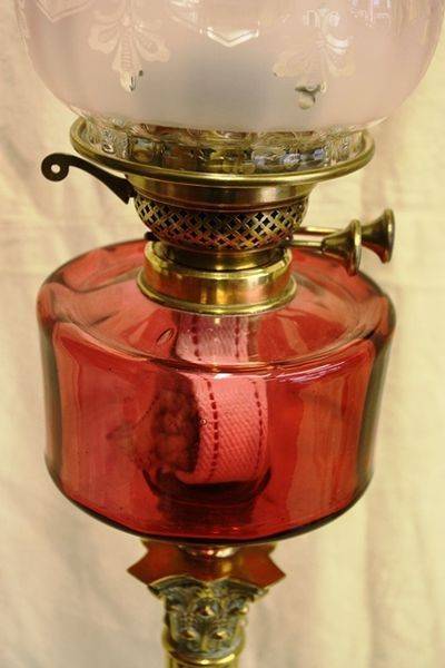 A Lovely Late Victorian Ruby Glass Oil Lamp. All Genuine and Original Double Burner Lamp.