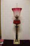 Victorian Banquet Oil Lamp Ruby Original Shade + Font on a brass Corinthian column