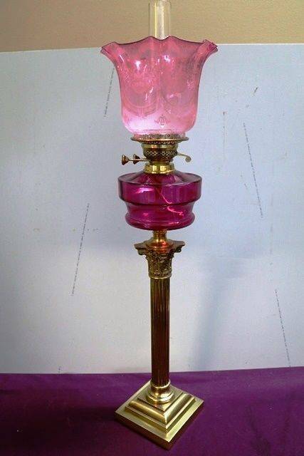 Victorian Ruby Glass Banquet Oil Lamp