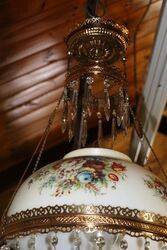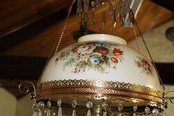 Antique Late C19th Millers Glass Hanging Lamp with a Brass Font and Original Shade. SHADE HAS A HAIRLINE CRACK ( not offensive )