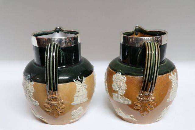 Pair Of Doulton Silver Rim Stoneware Jugs. Sheffield C1910-11